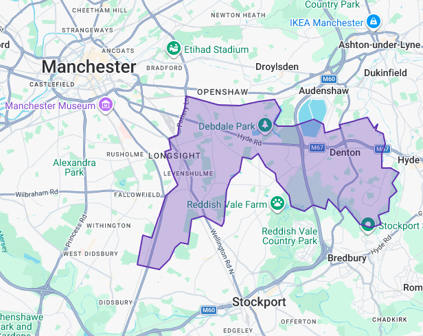Gorton and Denton seat map